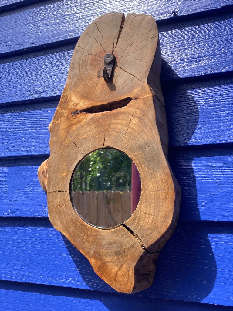 Cottonwood offcut with inlaid mirror and plant propagation bulb